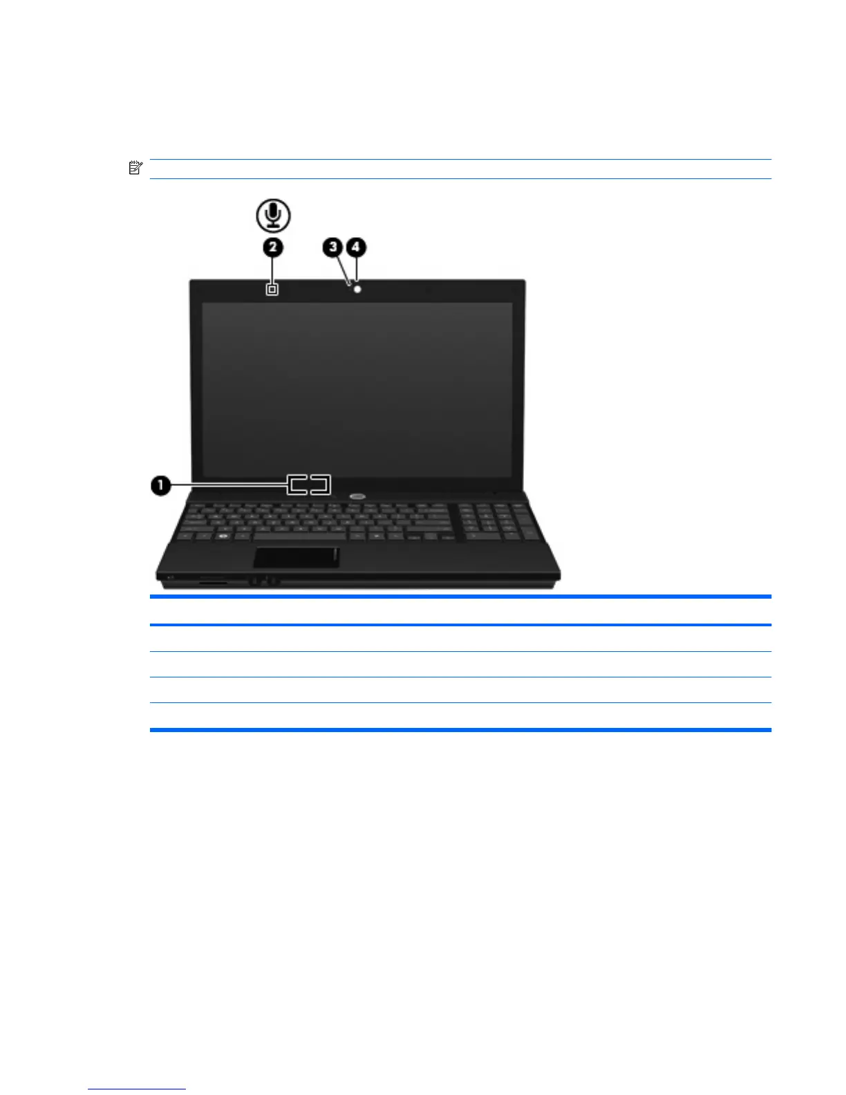 (4) Webcam (select models only) Records audio and video and captures still photographs.