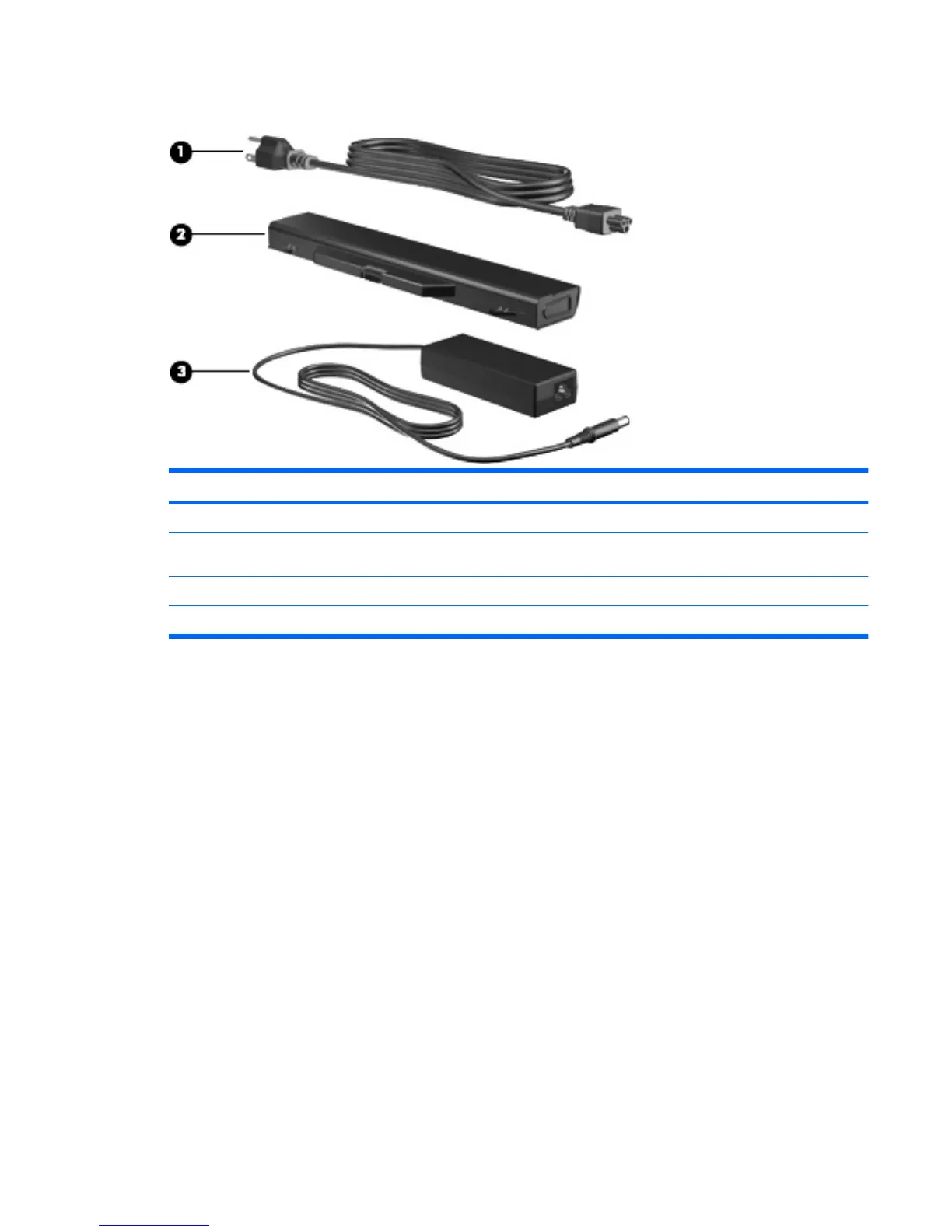 (1) Power cord* Connects an AC adapter to an AC outlet.