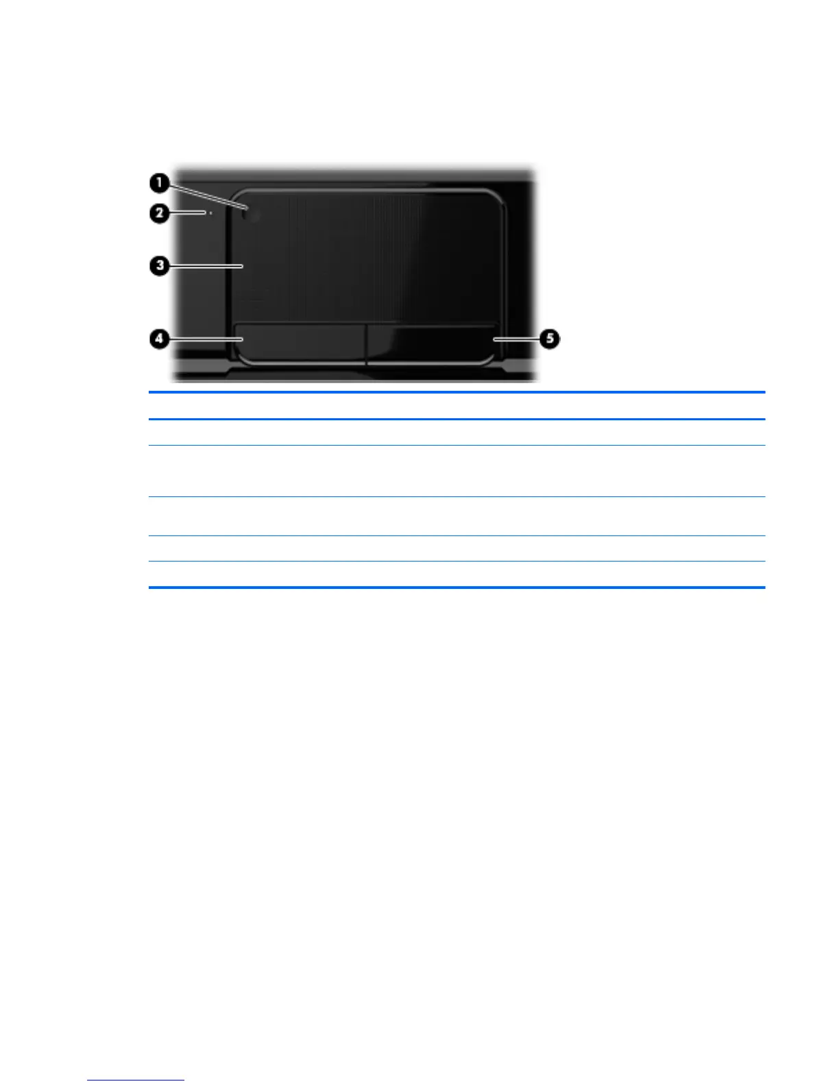 (1) TouchPad on/off button Turns the TouchPad on or off.