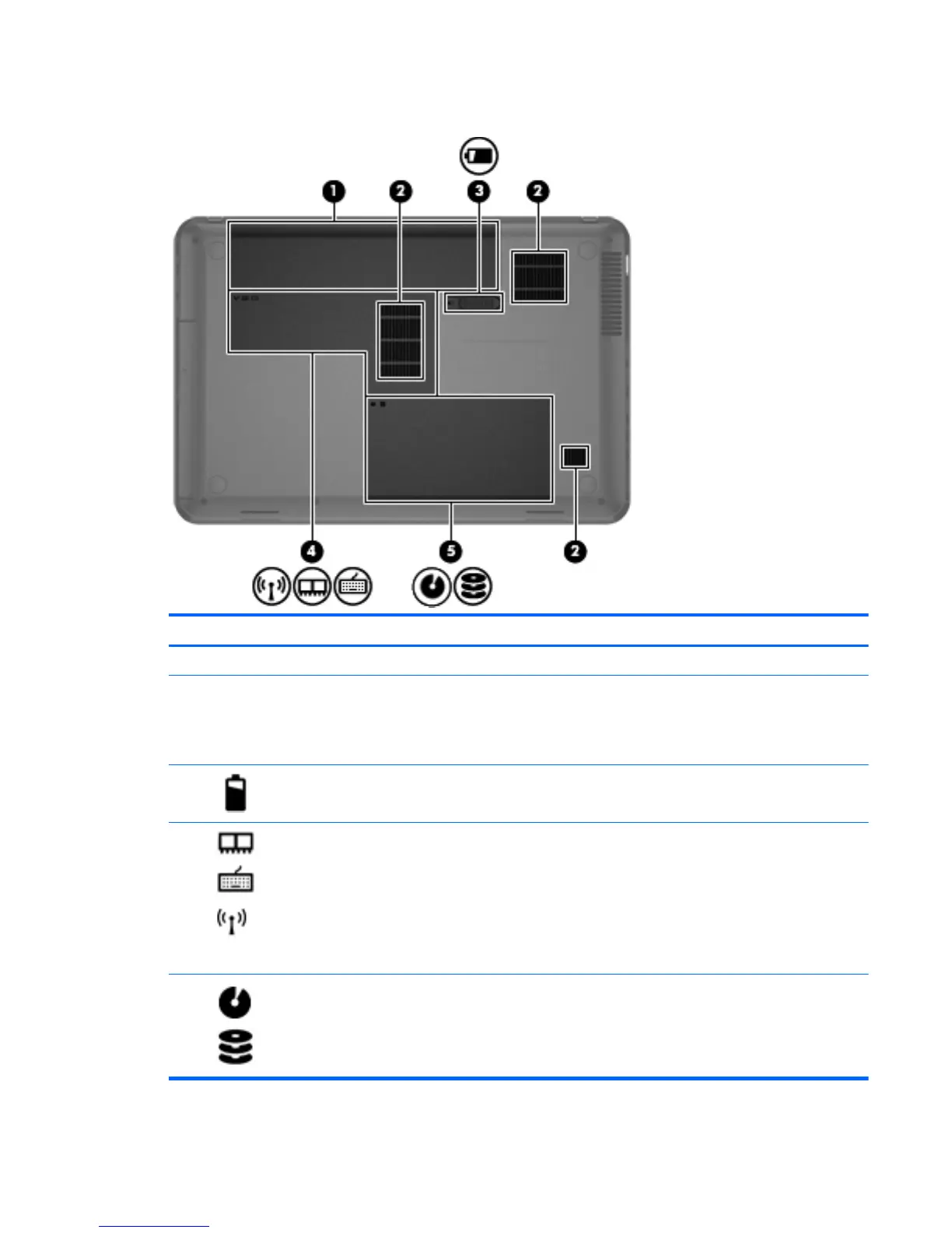 (1) Battery bay Holds the battery.