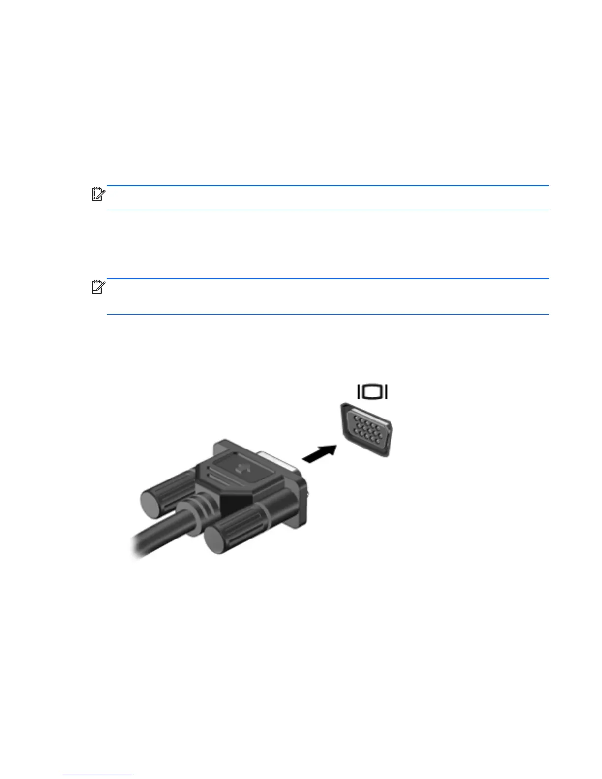 external monitor, projector, or TV. Most computers have a video graphics array (VGA) port, which
