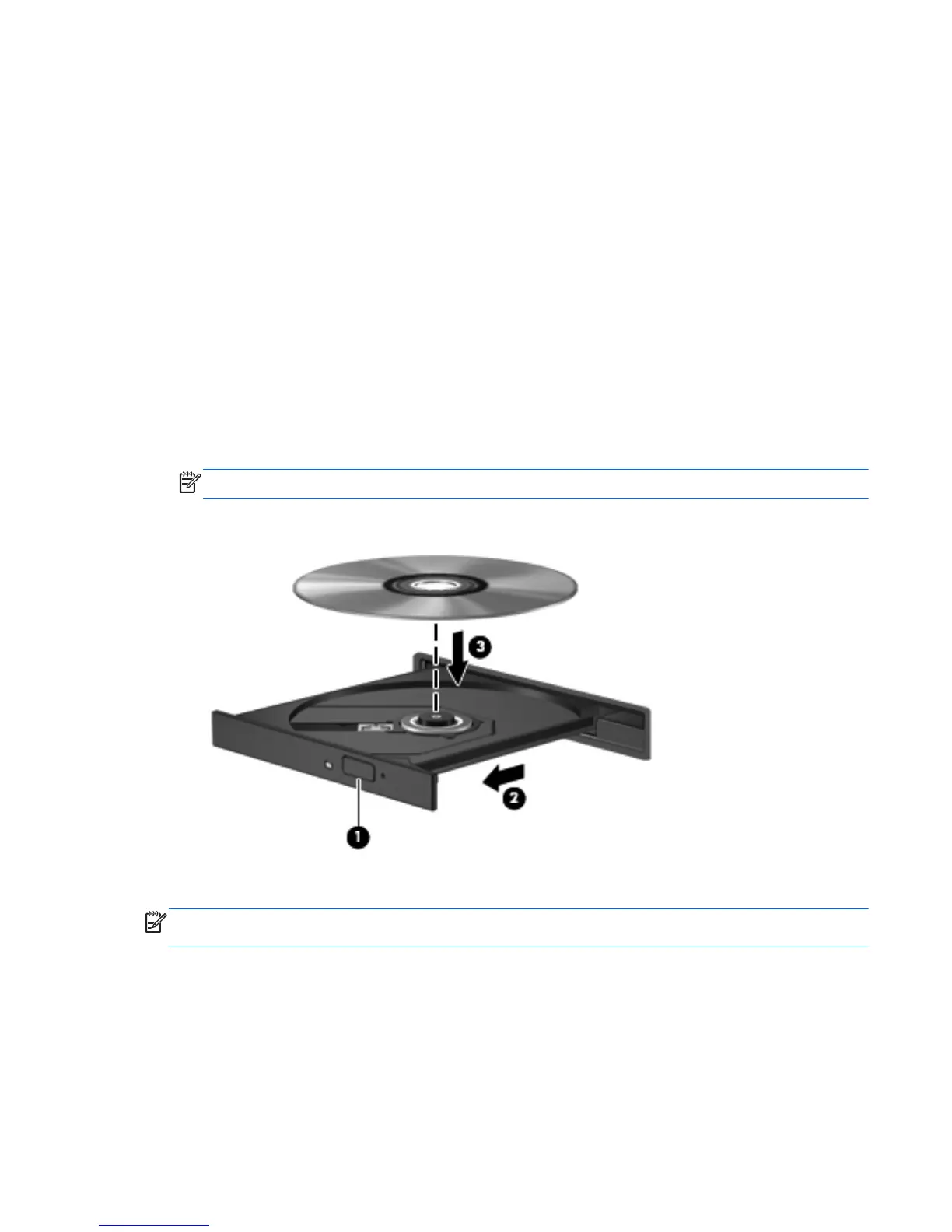 NOTE: After you insert a disc, a short pause is normal. If you have not selected a media player, an