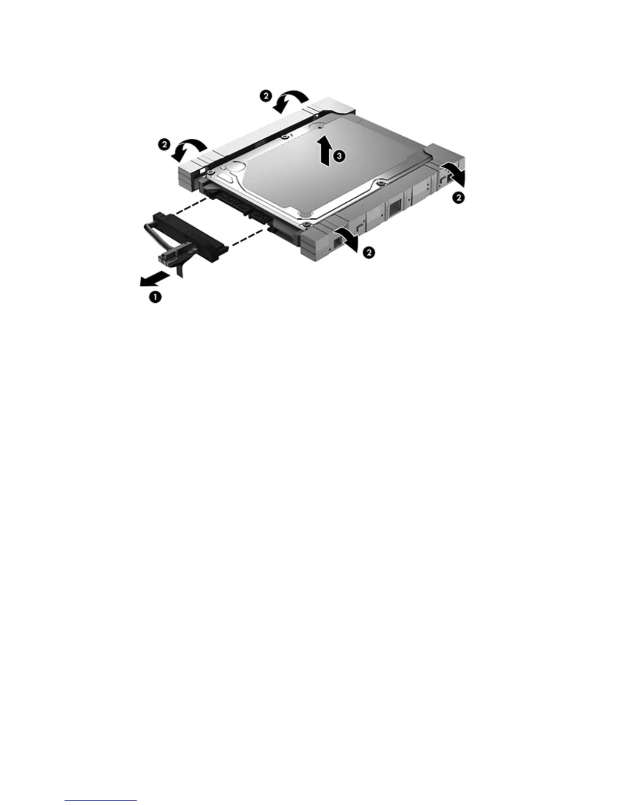 6. Remove the hard drive (3) from the bracket.