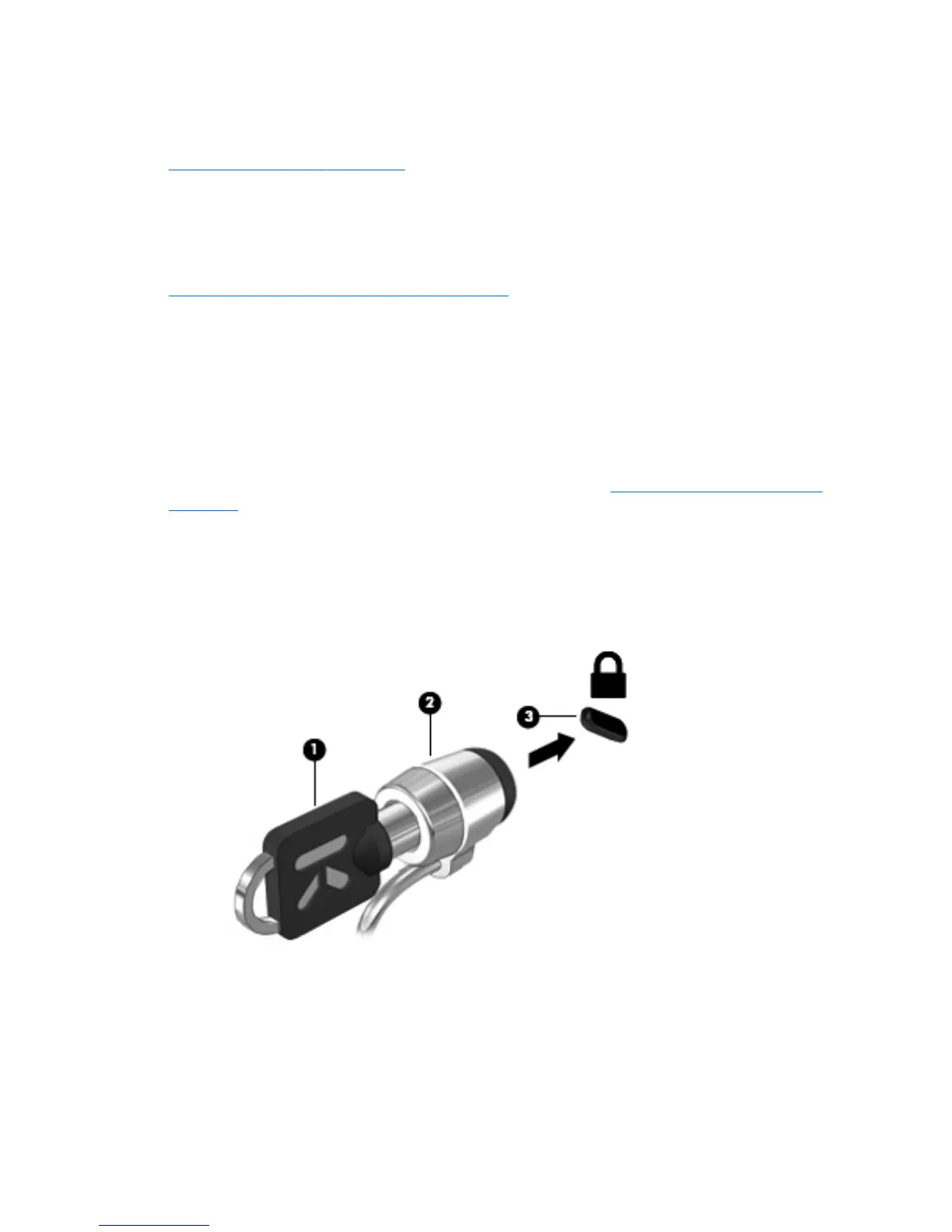 3. Insert the security cable lock into the security cable slot on the computer (3), and then lock the