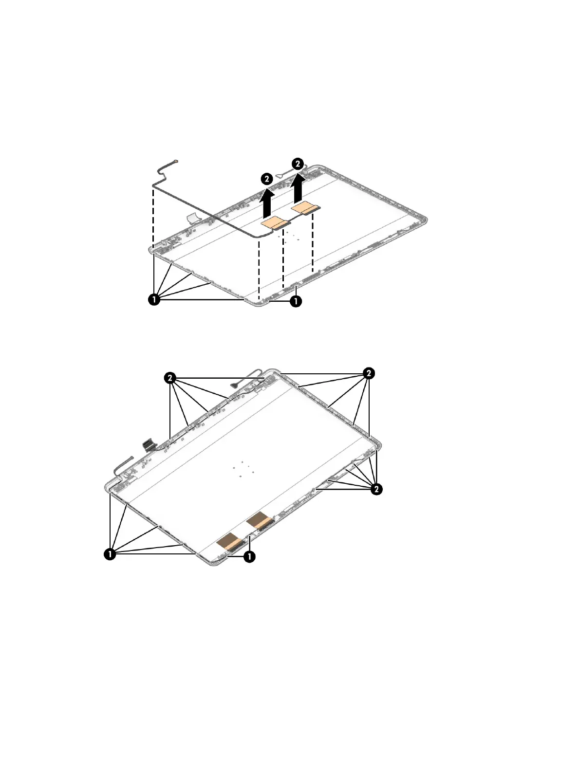b. Release the antenna from the display enclosure (2).