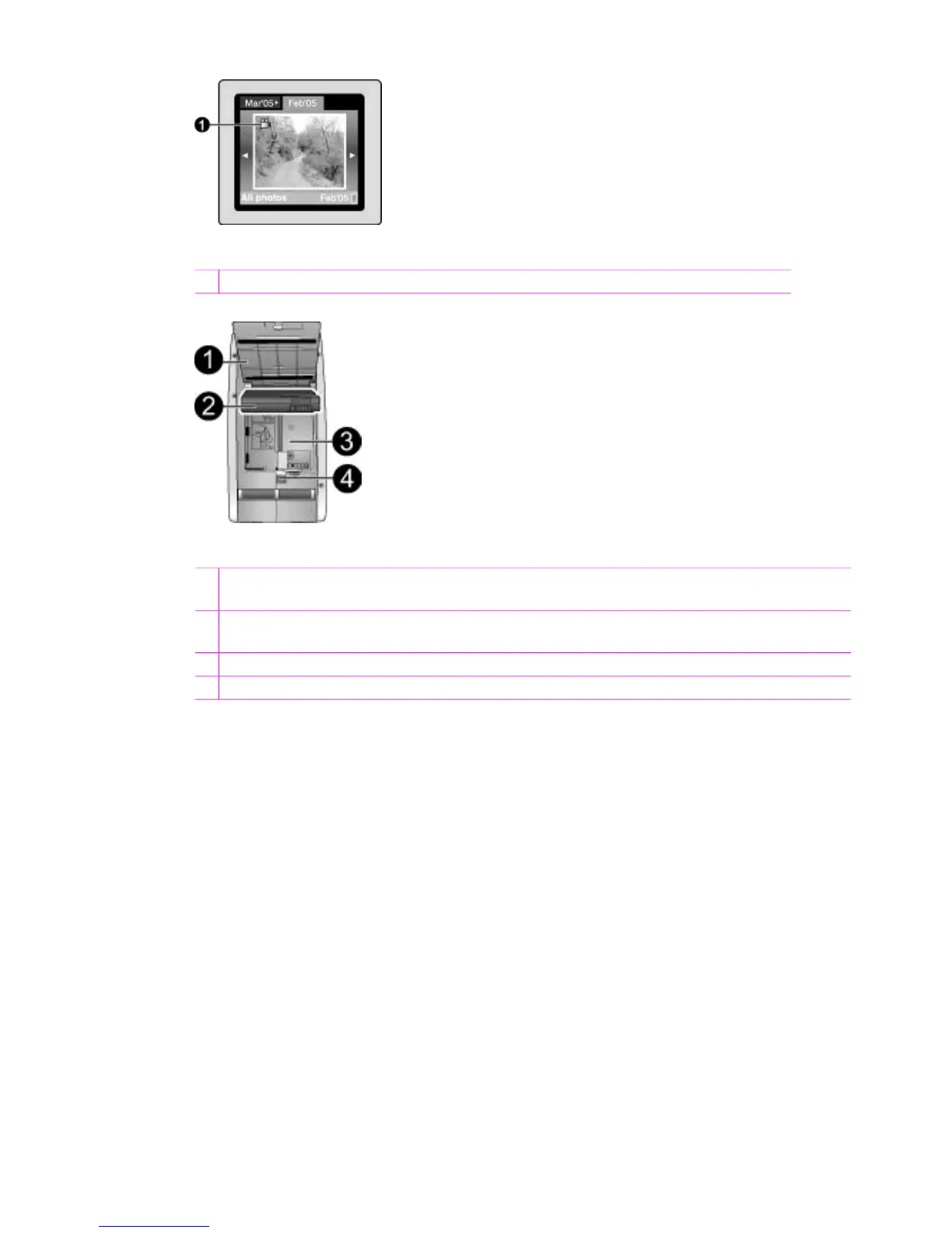 3 Internal battery compartment: Insert the optional HP Photosmart Internal Battery here.