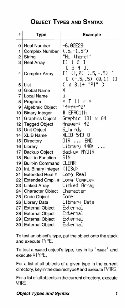 HP 48G - Object Types and Syntax