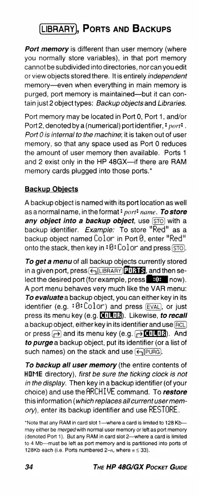 HP 48G - LIBRARY), Ports and Backups