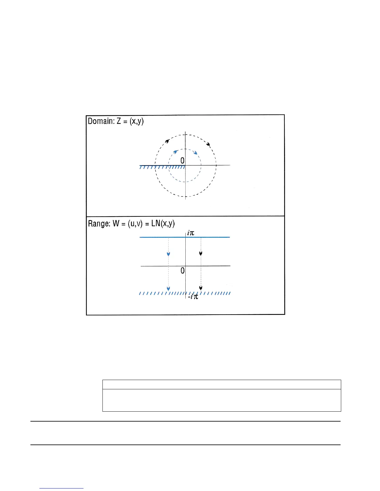 the restricted domain Z = (x,y). EXP sends this domain onto the whole complex plane in the
