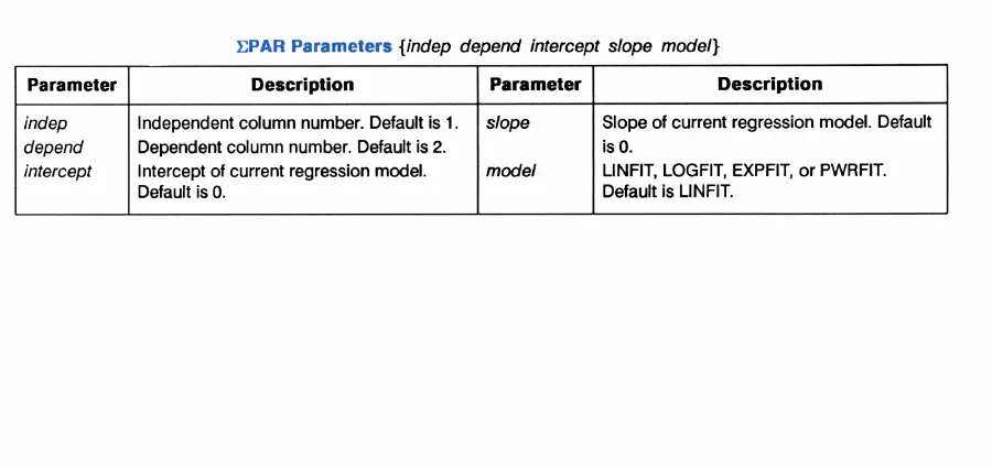 HP 48SX - YPAR Parameters