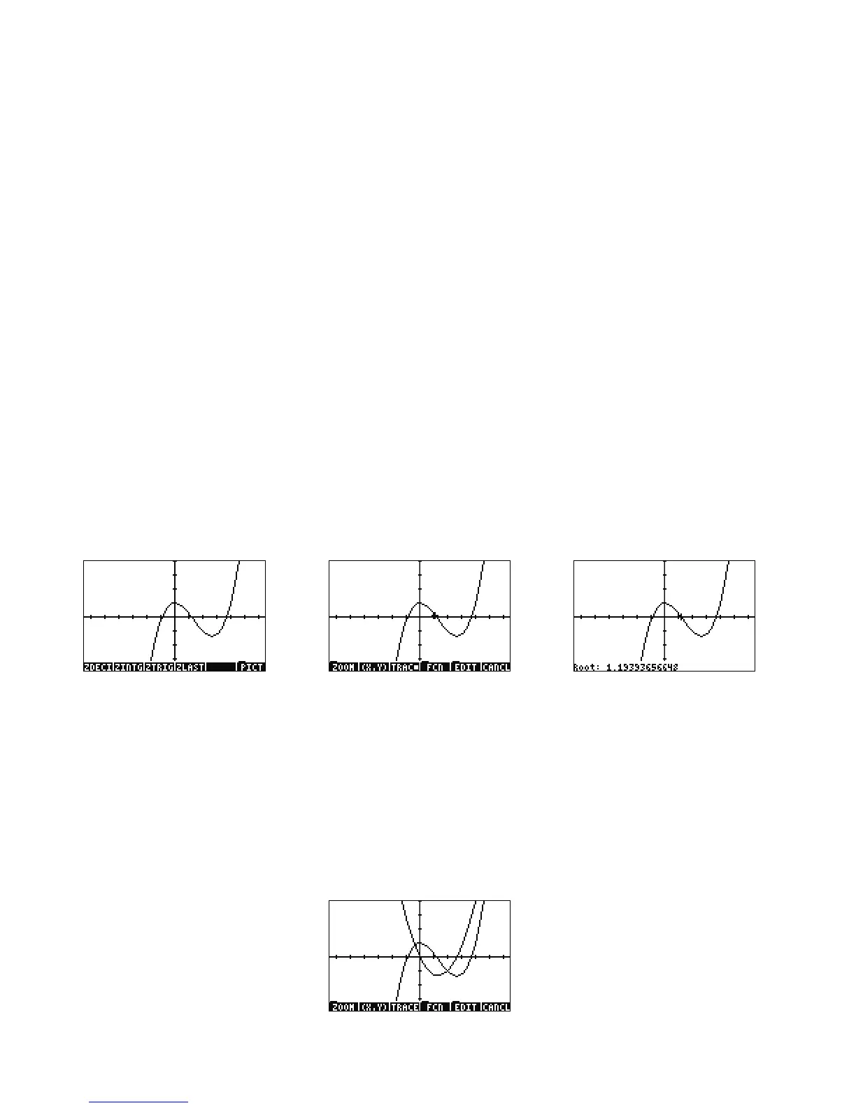 menu key for options for finding roots, areas, intersections, and slope, among other options. Press the ROOT menu key to calculate