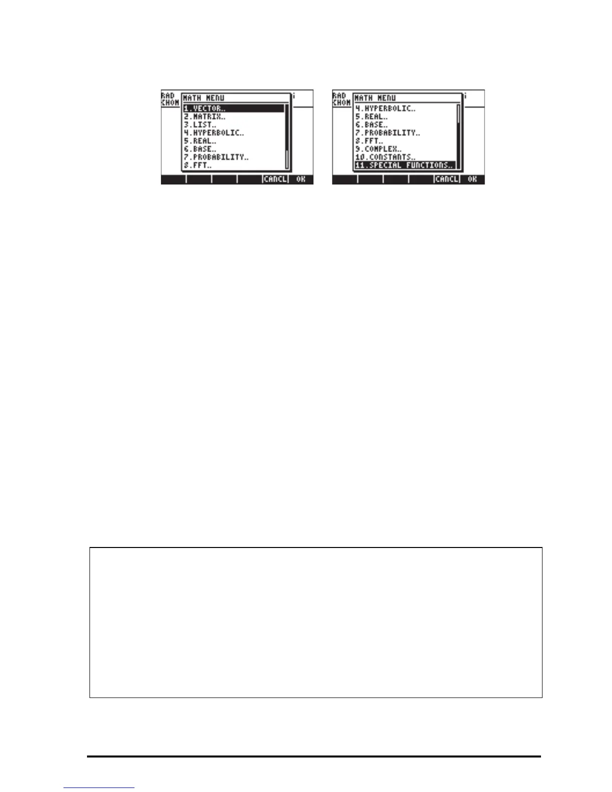 1. Since the operation of MTH functions (and of many other calculator menus)