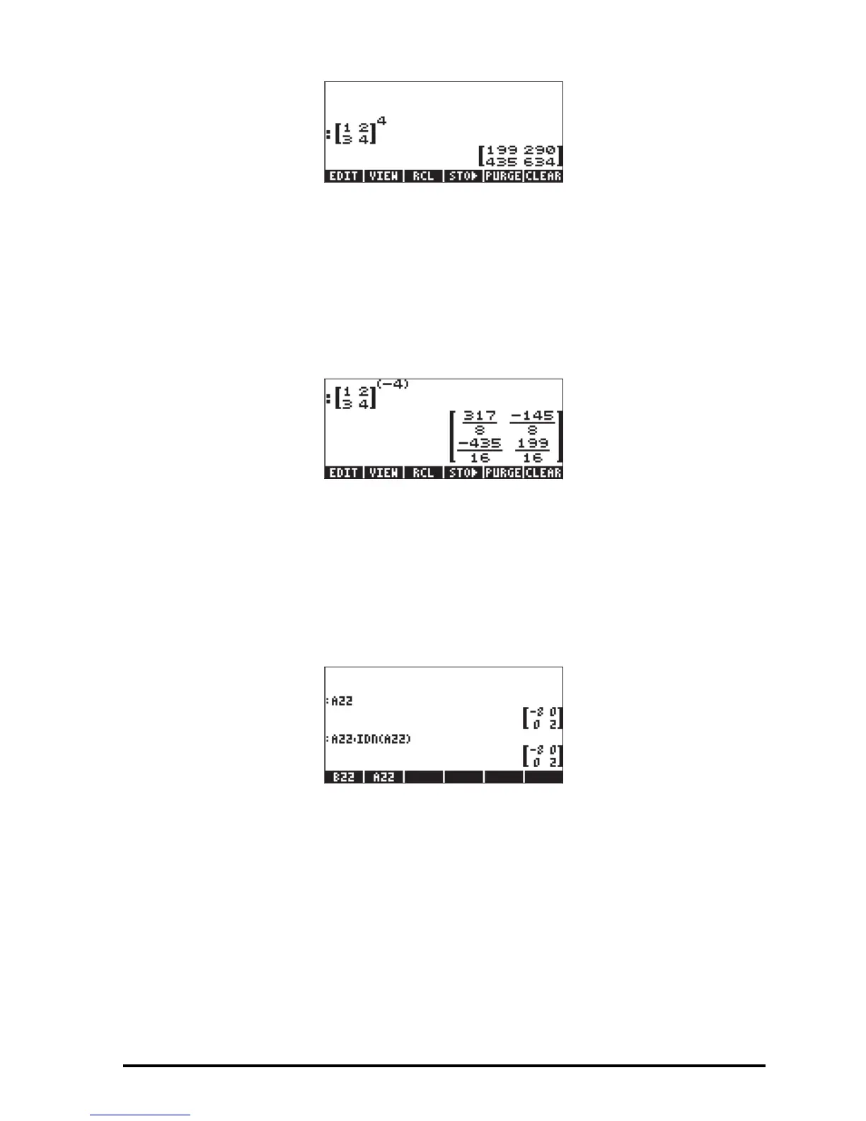 power] `. In RPN mode, the keystrokes are: [enter or select the matrix] †