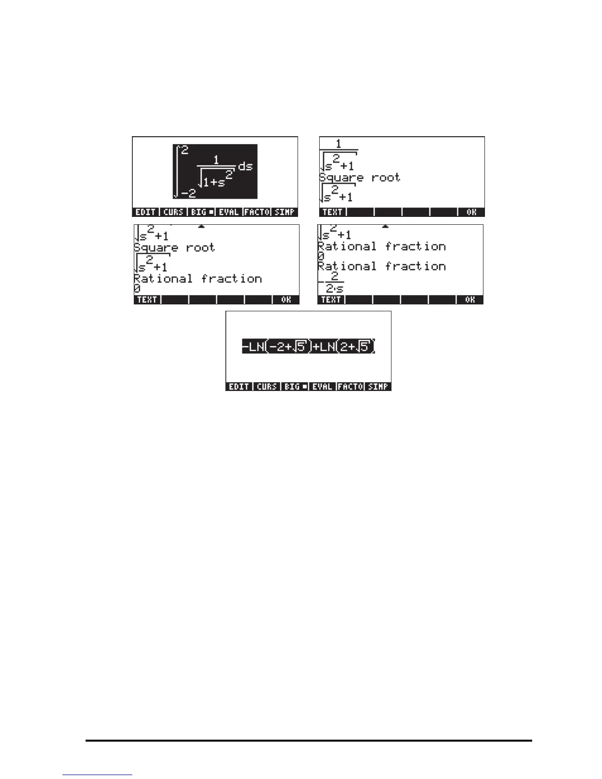 steps followed by the CAS to solve this integral. First, CAS identifies a square