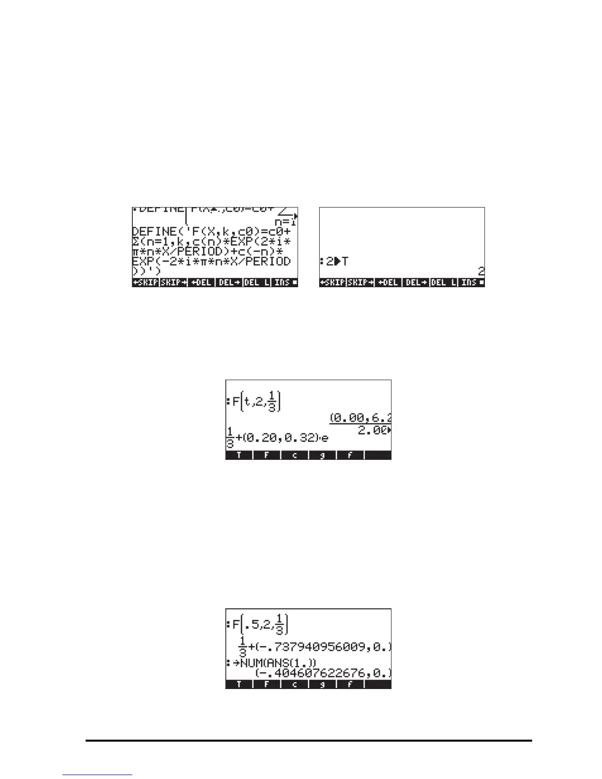 DEFINE(‘F(X,k,c0) = c0+Σ(n=1,k,c(n)*EXP(2*i*π*n*X/T)+