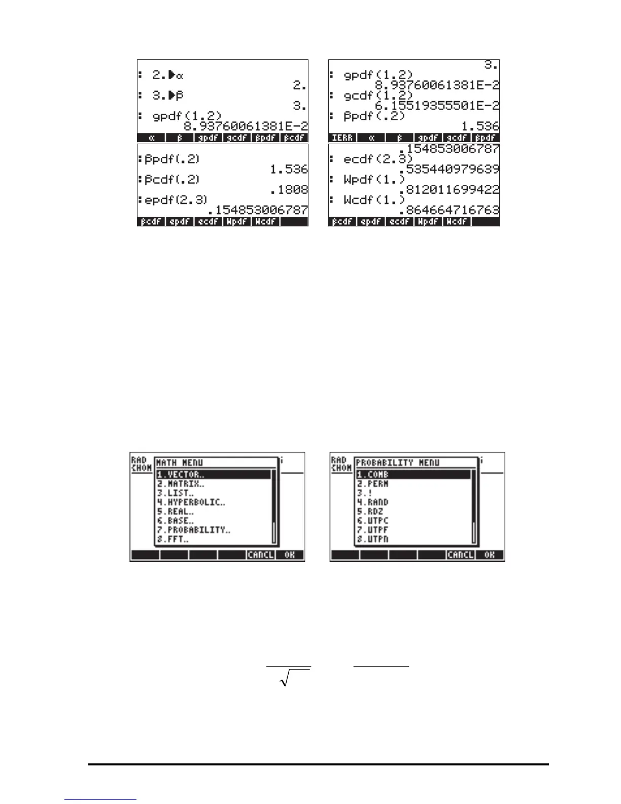 PROBABILITY menu introduced earlier in this chapter. The functions are NDIST,