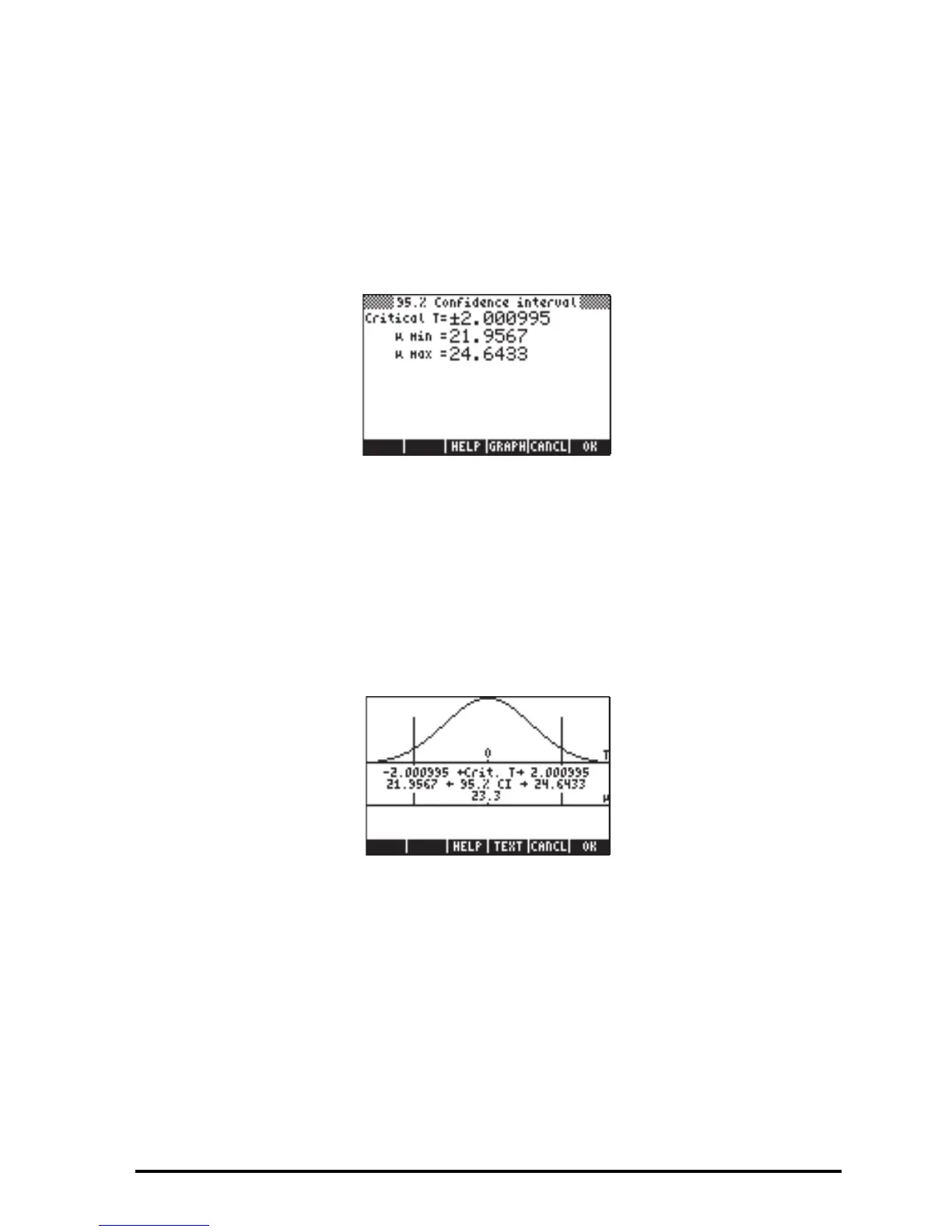 corresponding interval limits (21.98424 and 24.61576). Press @TEXT to return