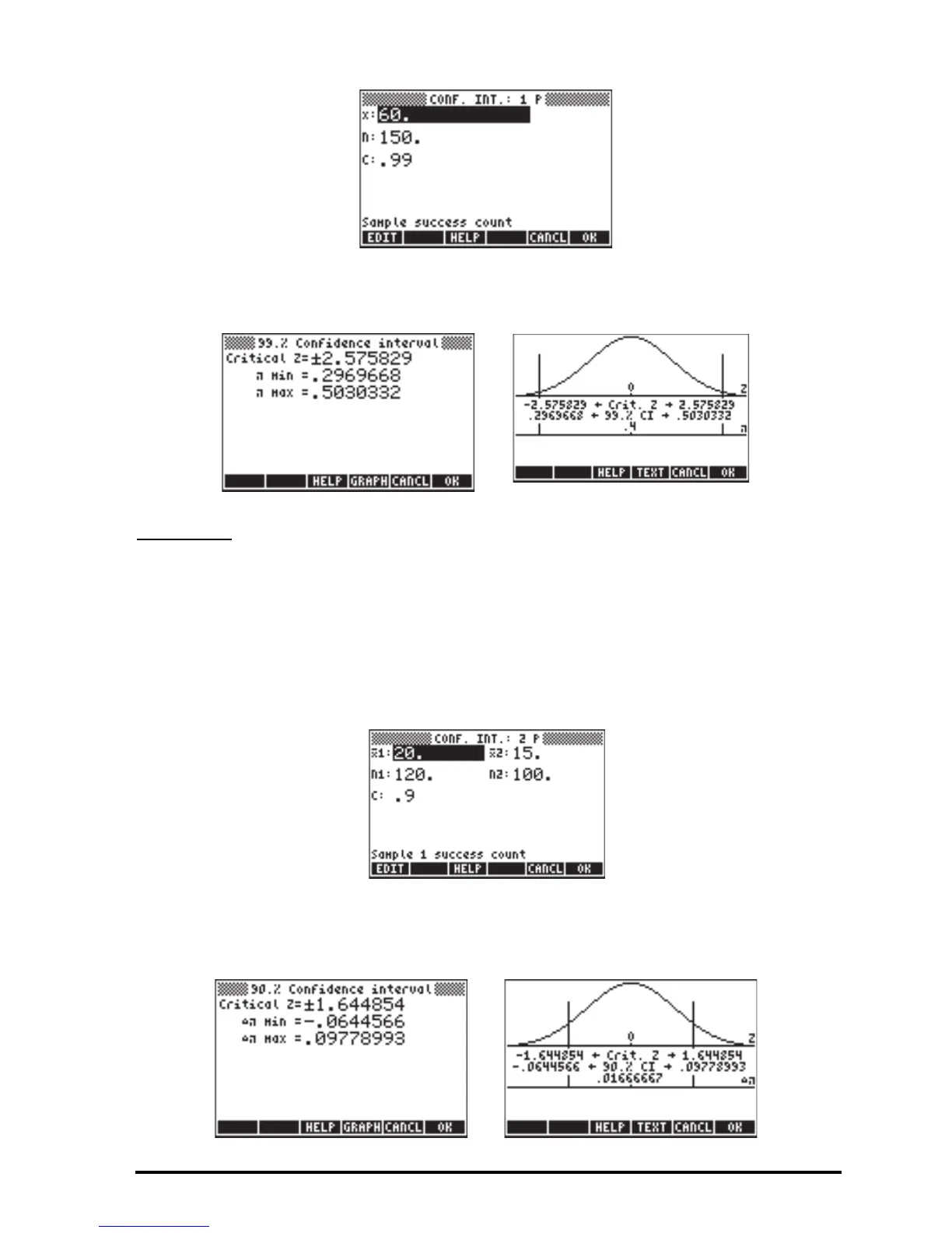 calculator. Press ˜˜˜@@@OK@@@ to select option 4. Z-INT: p1 – p2.. Enter