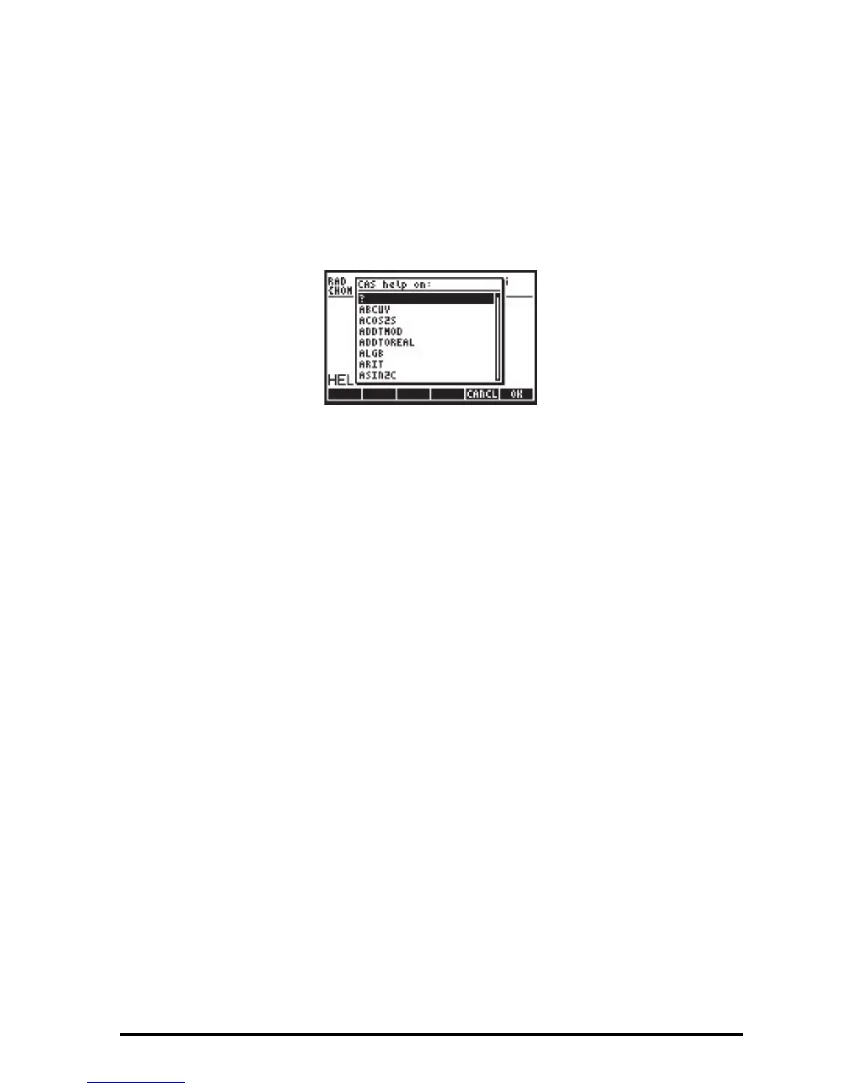 The commands are listed in alphabetical order. Using the vertical arrow keys