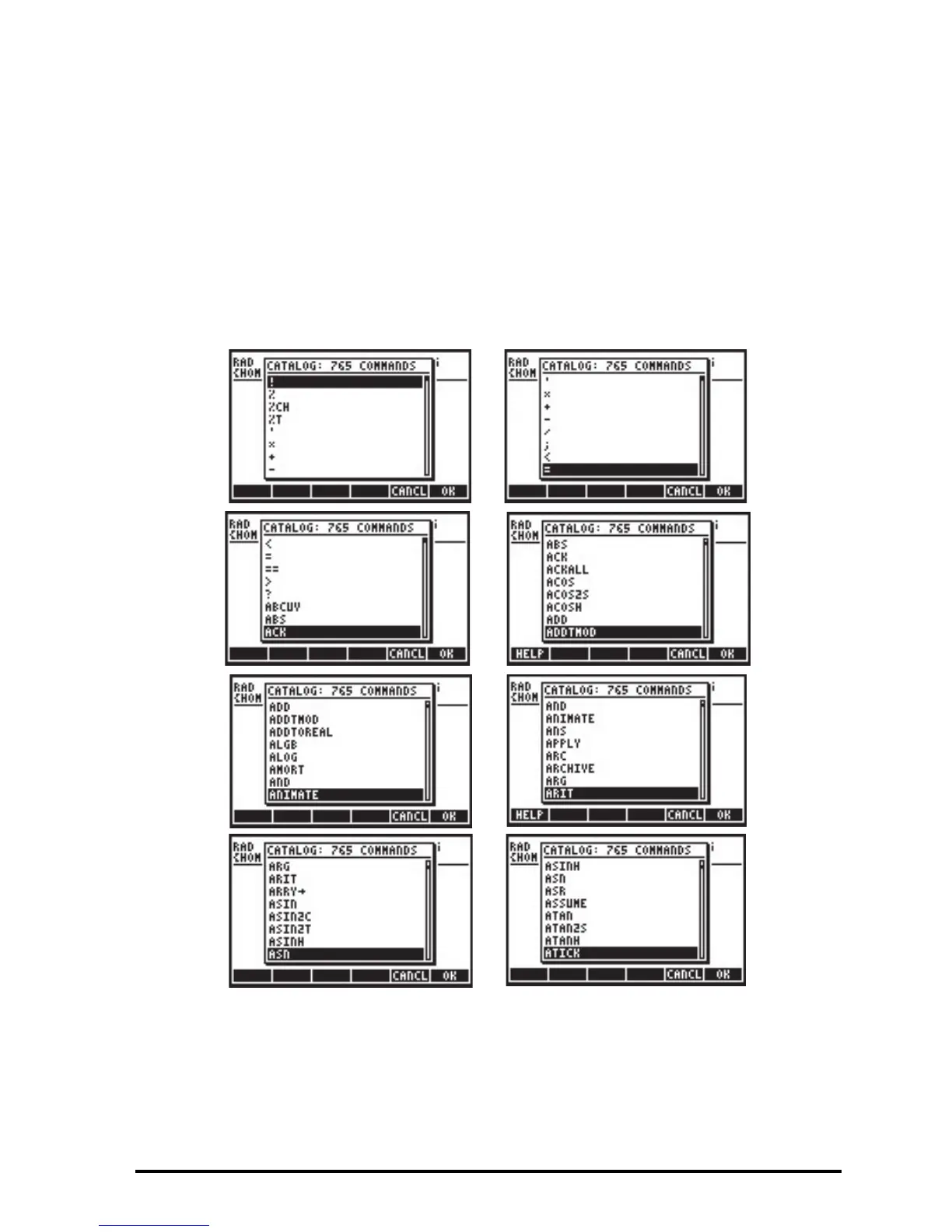 Press this soft menu key to get the CAS help facility entry for the command. The