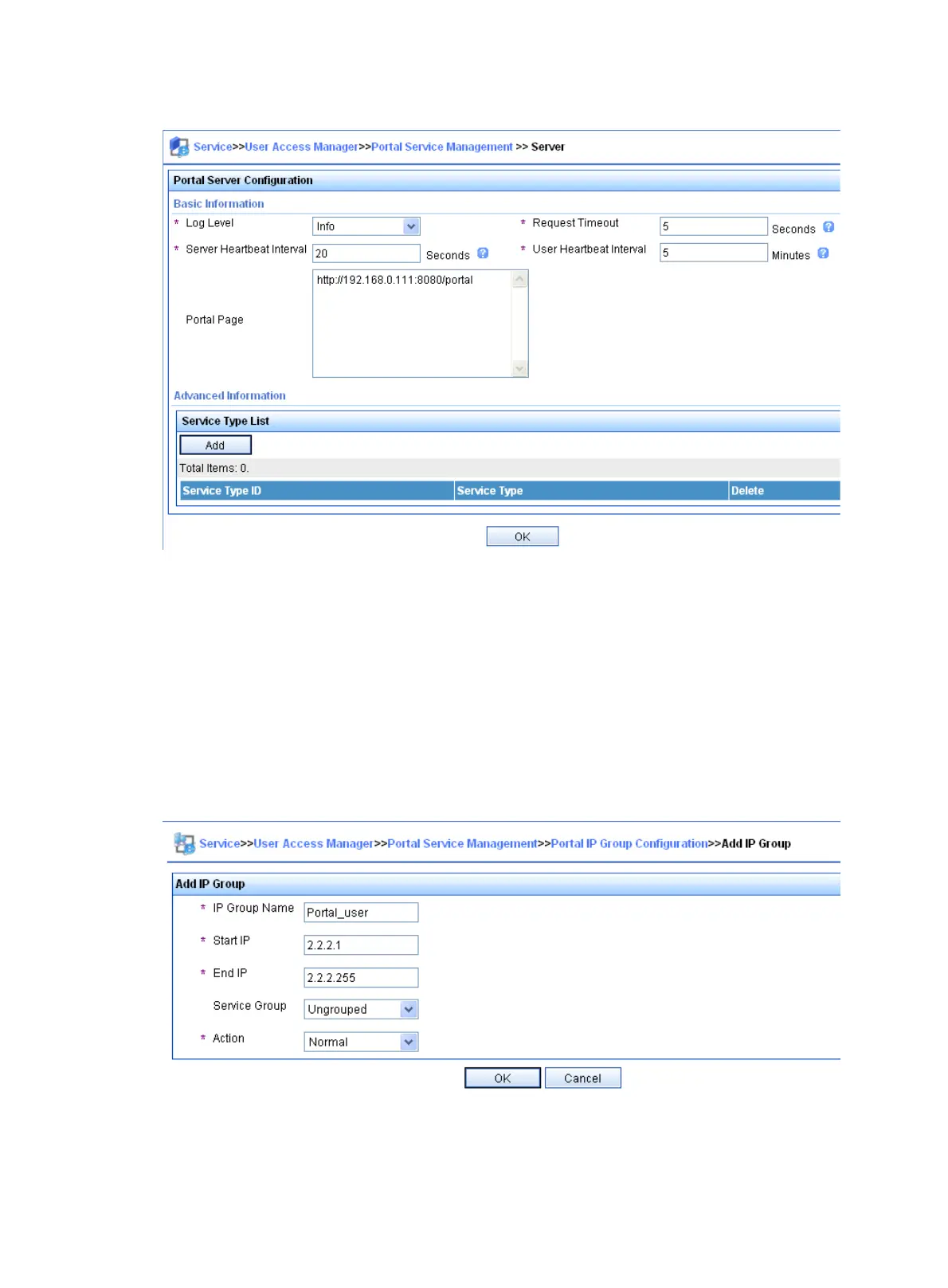 Select User Access Manager > Portal Service Management > IP Group from the navigation tree to enter