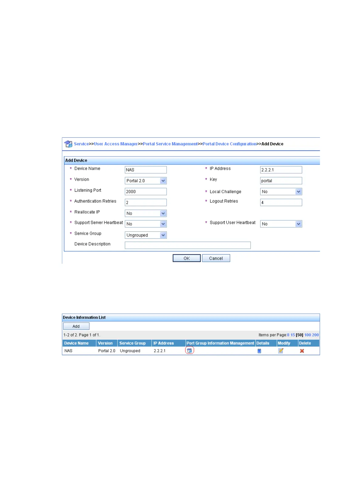 portal device configuration page. Then, click Add to enter the page shown in Figure 53.