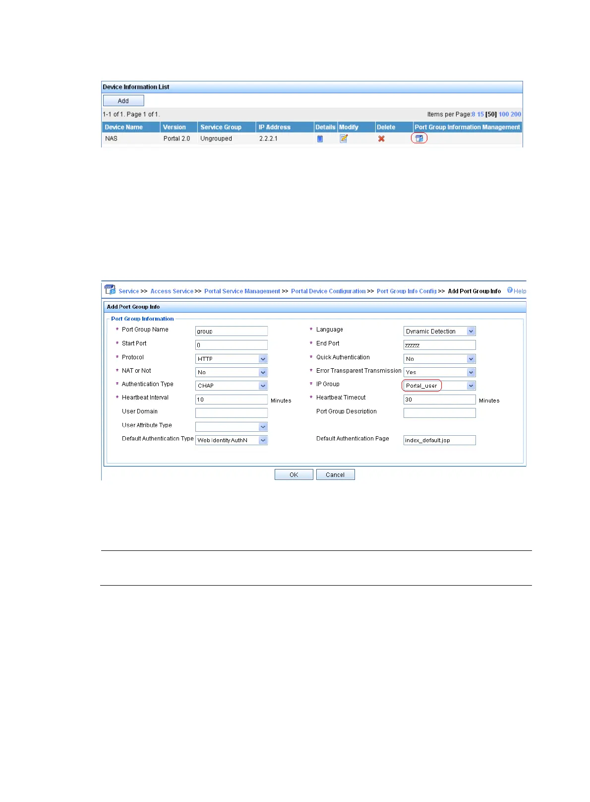 On the port group configuration page, click Add to enter the page shown in Figure 64. Perform the