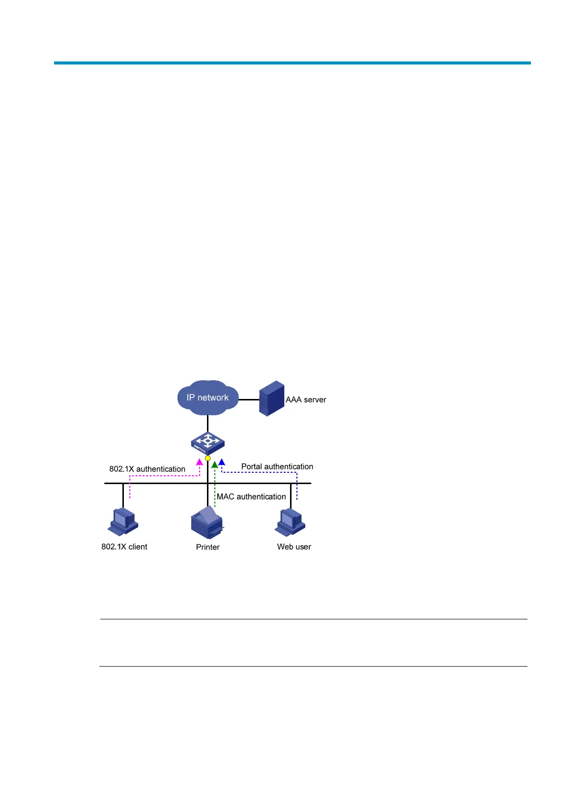 authentication, MAC authentication, and 802.1X authentication on a Layer-2 access port. A terminal