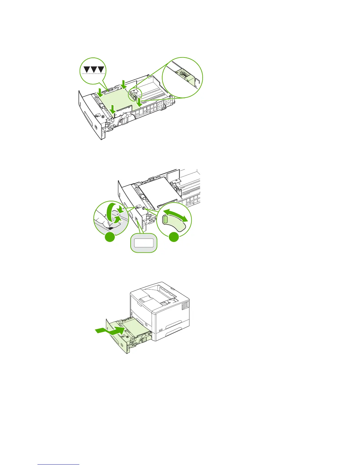 4. Place the paper in the tray and make sure that it is flat at all four corners. Keep the paper below