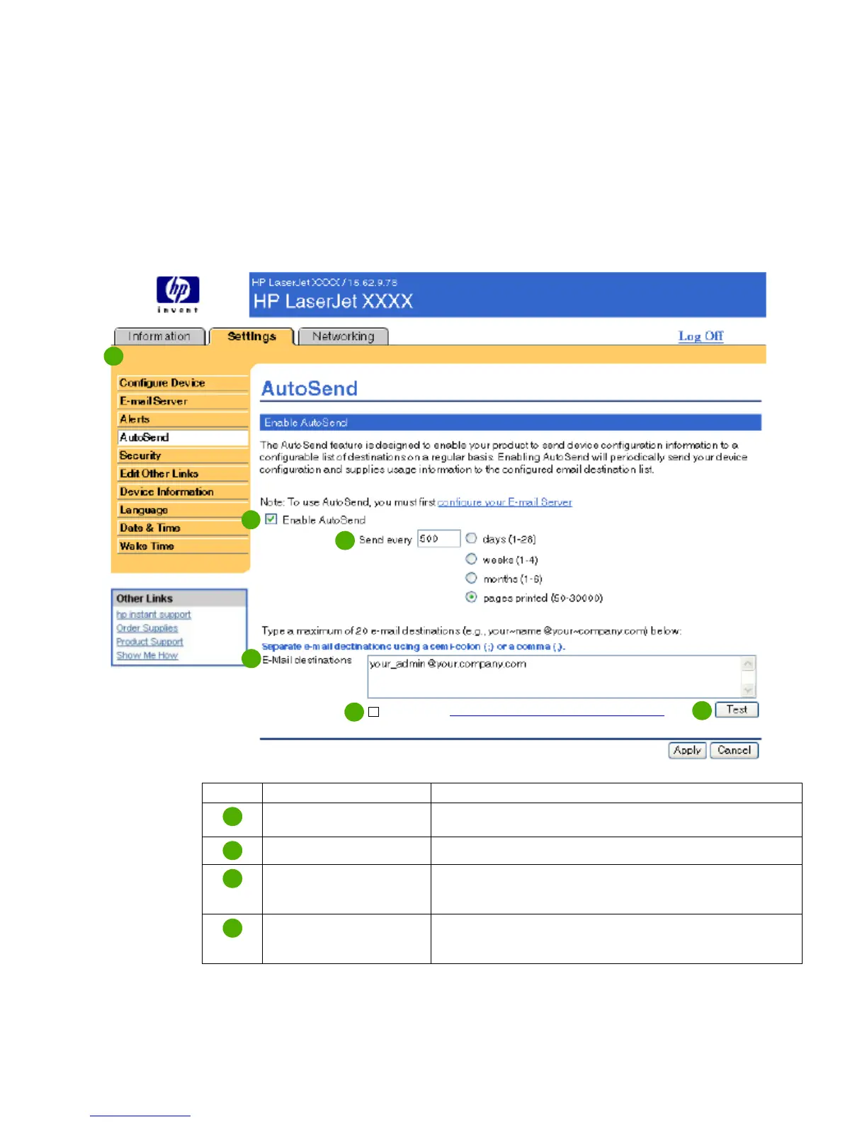 Use the AutoSend screen to send product-configuration and supplies-usage information