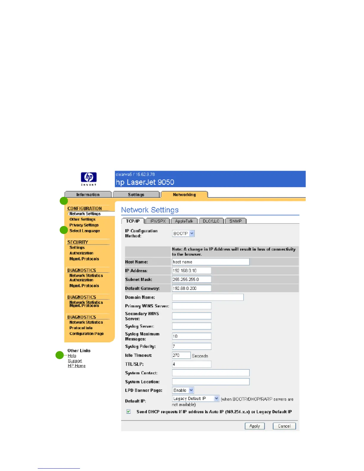 of your HP Jetdirect print server. The following screen is similar to what you might see when you