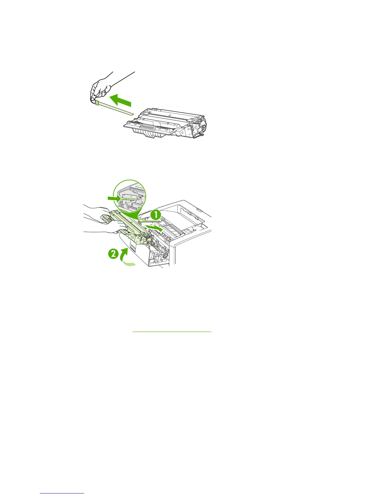 5. Remove the shipping tape from the new print cartridge. Discard the shipping tape according to
