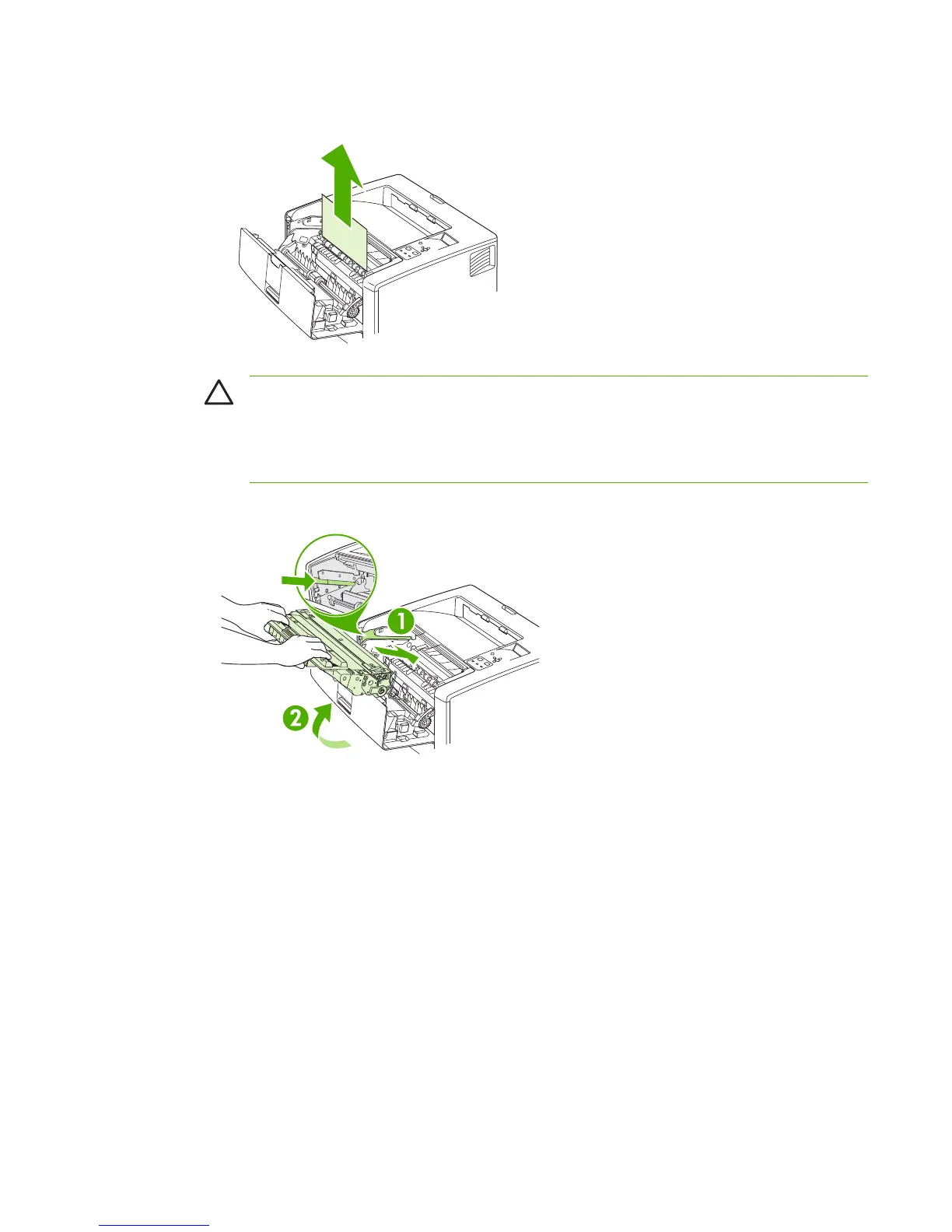 CAUTION Avoid spilling loose toner. Use a dry, lint-free cloth, to clean any toner that