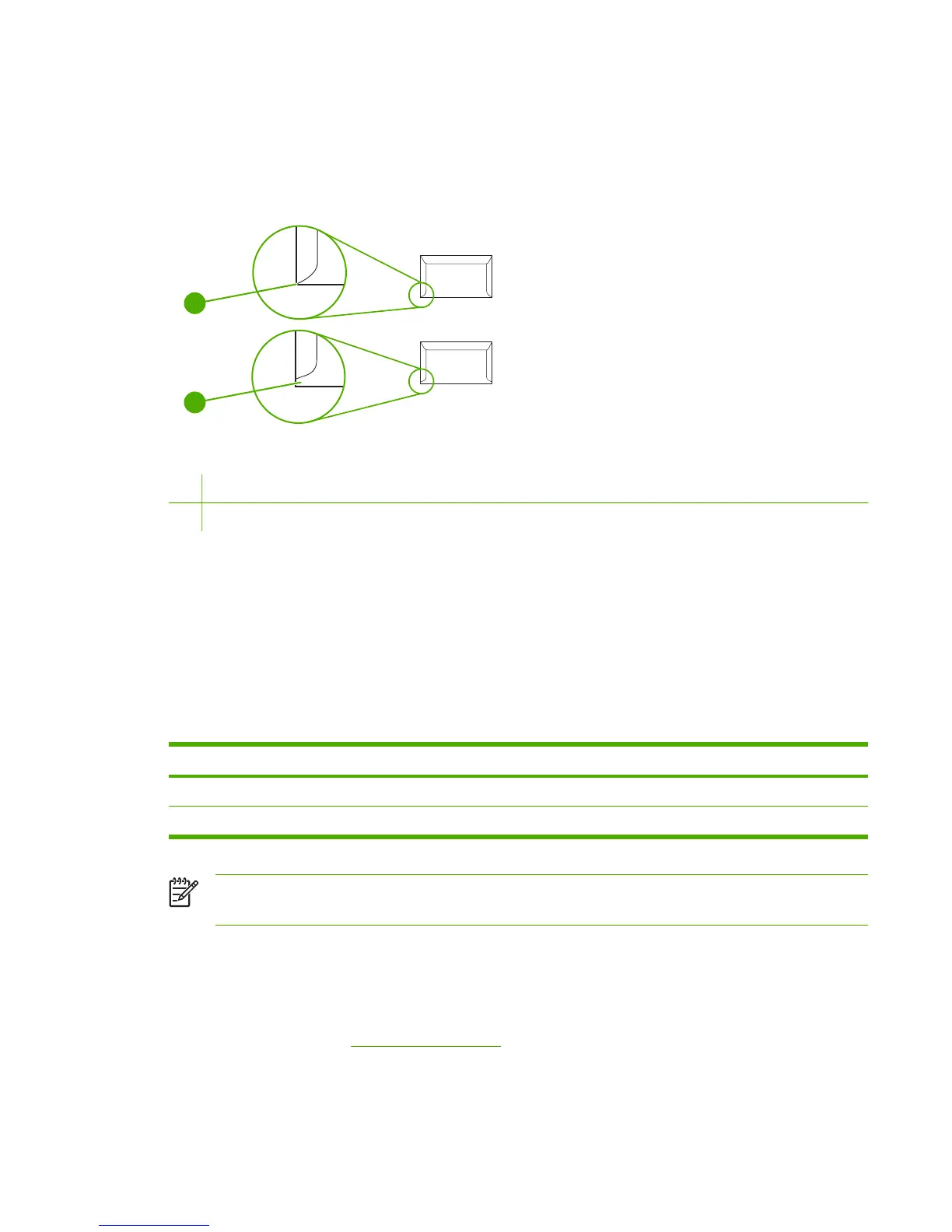 edges of the envelope. Avoid printing over the area where the envelope seams meet.