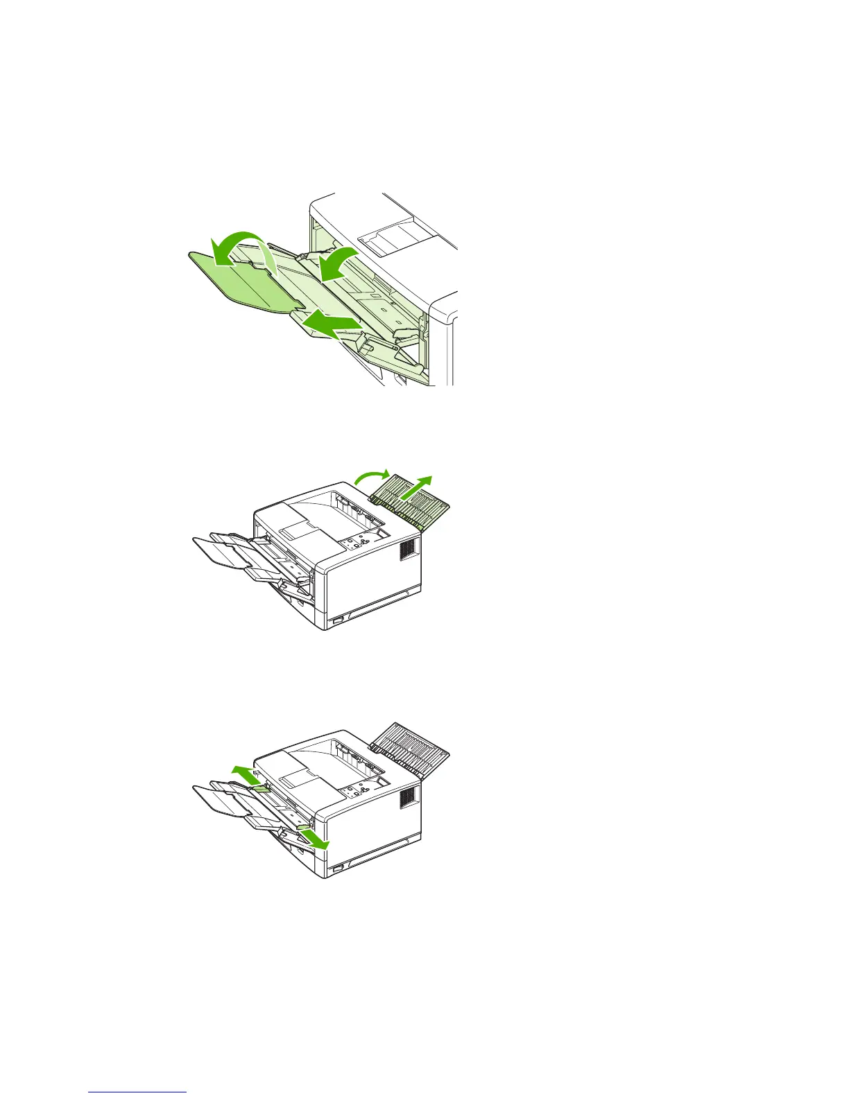 2. Open the rear output bin and pull out the tray extension. (This can reduce envelope curl and