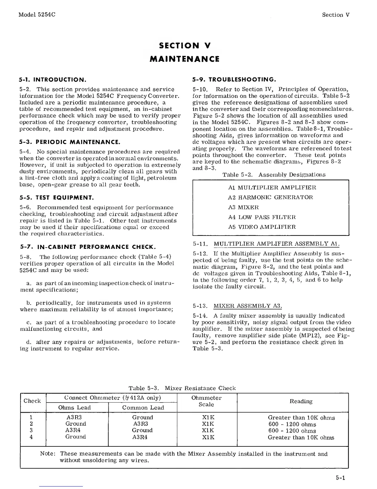 for the Model 5254C Frequency Converter.