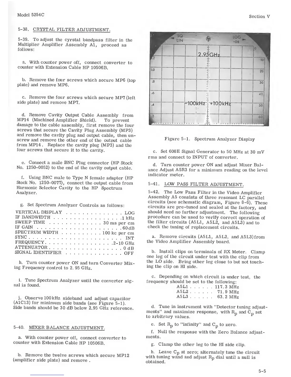 HP 5254C - CRYSTAL FILTER ADJUSTMENT; MIXER BALANCE ADJUSTMENT; LOW PASS FILTER ADJUSTMENT