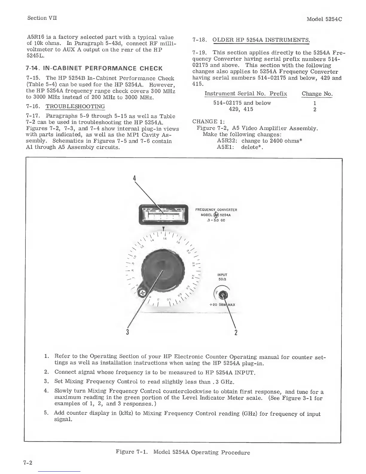HP 5254C - MODEL 5254 A PERFORMANCE CHECK; MODEL 5254 A TROUBLESHOOTING; OLDER HP 5254 A INSTRUMENTS