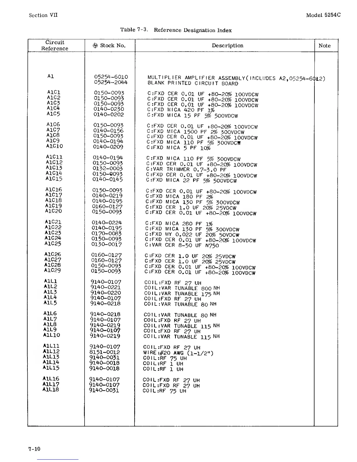 HP 5254C - MODEL 5254 A REFERENCE DESIGNATIONS