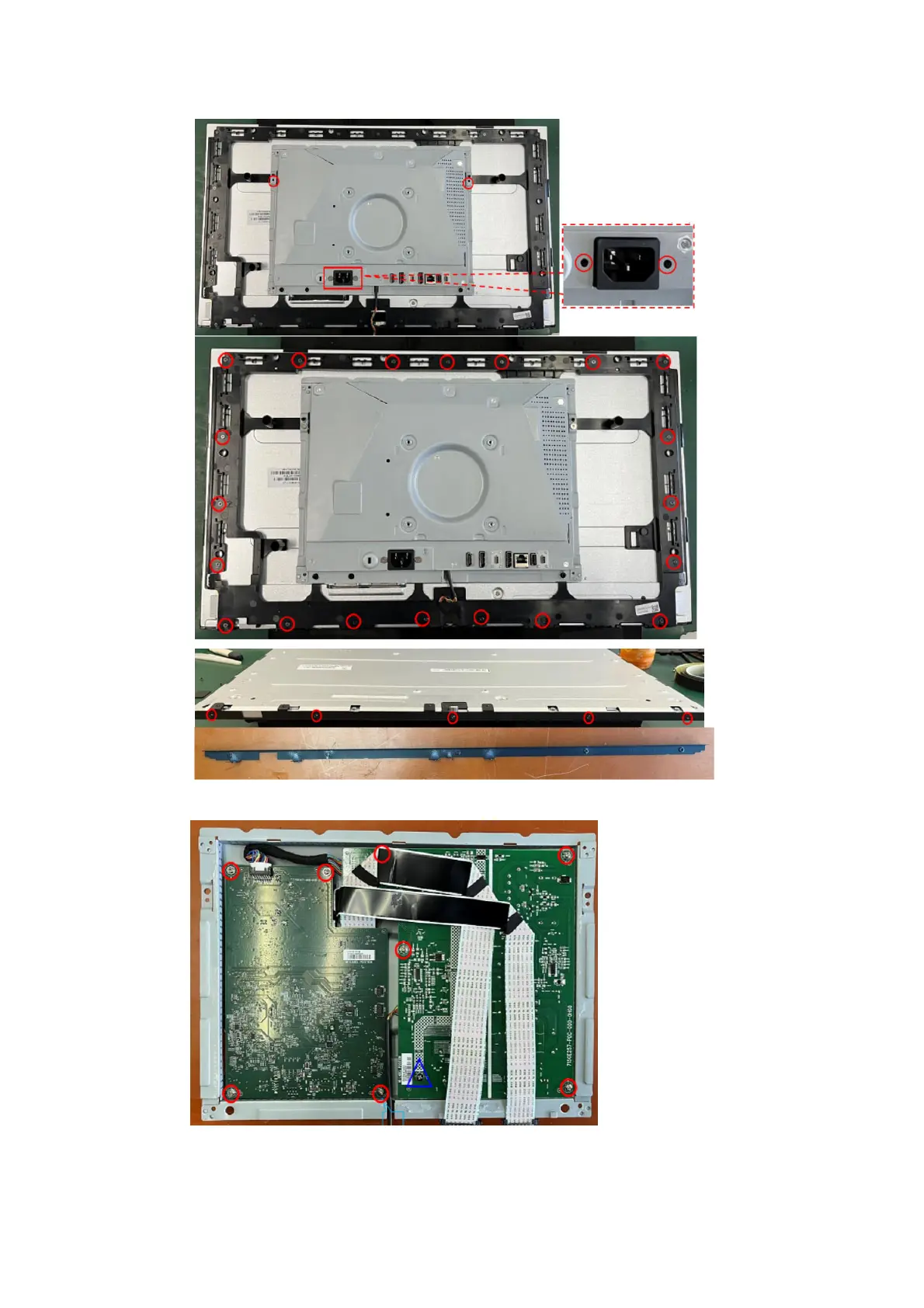 Remove the screws to disassemble the main frame/middle frame from panel