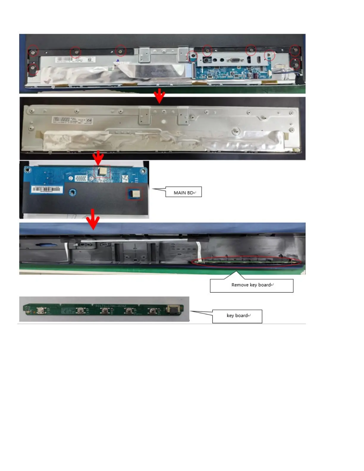 Pull out the LVDS/ LED cable to panel and MB.