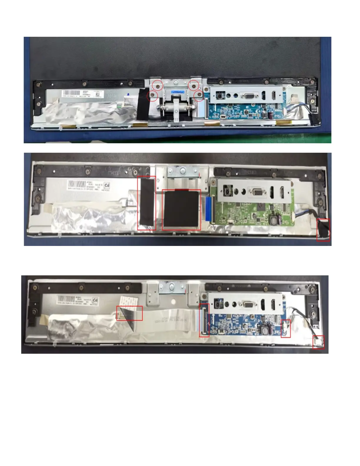 5. Remove the acetate tapes from the LVDS/ LED cable.