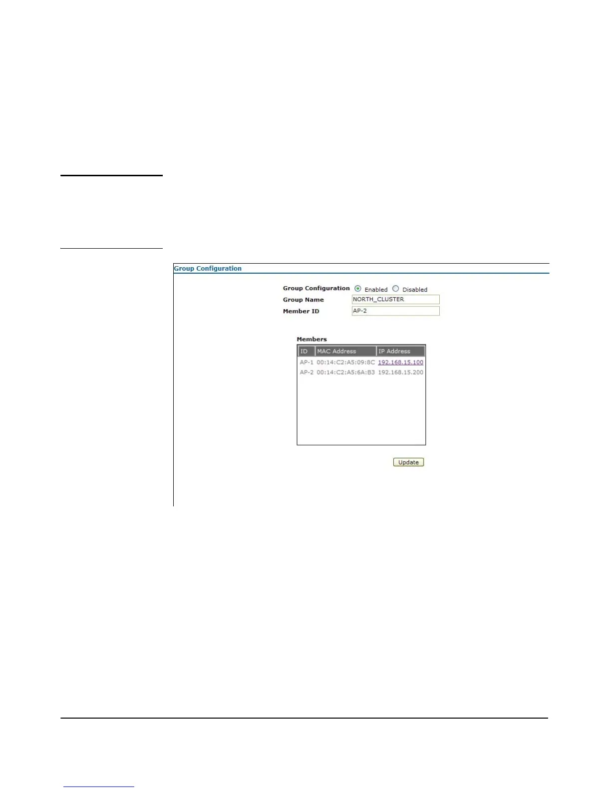 ■ [Update]: Updates the Group Configuration settings on the access point.