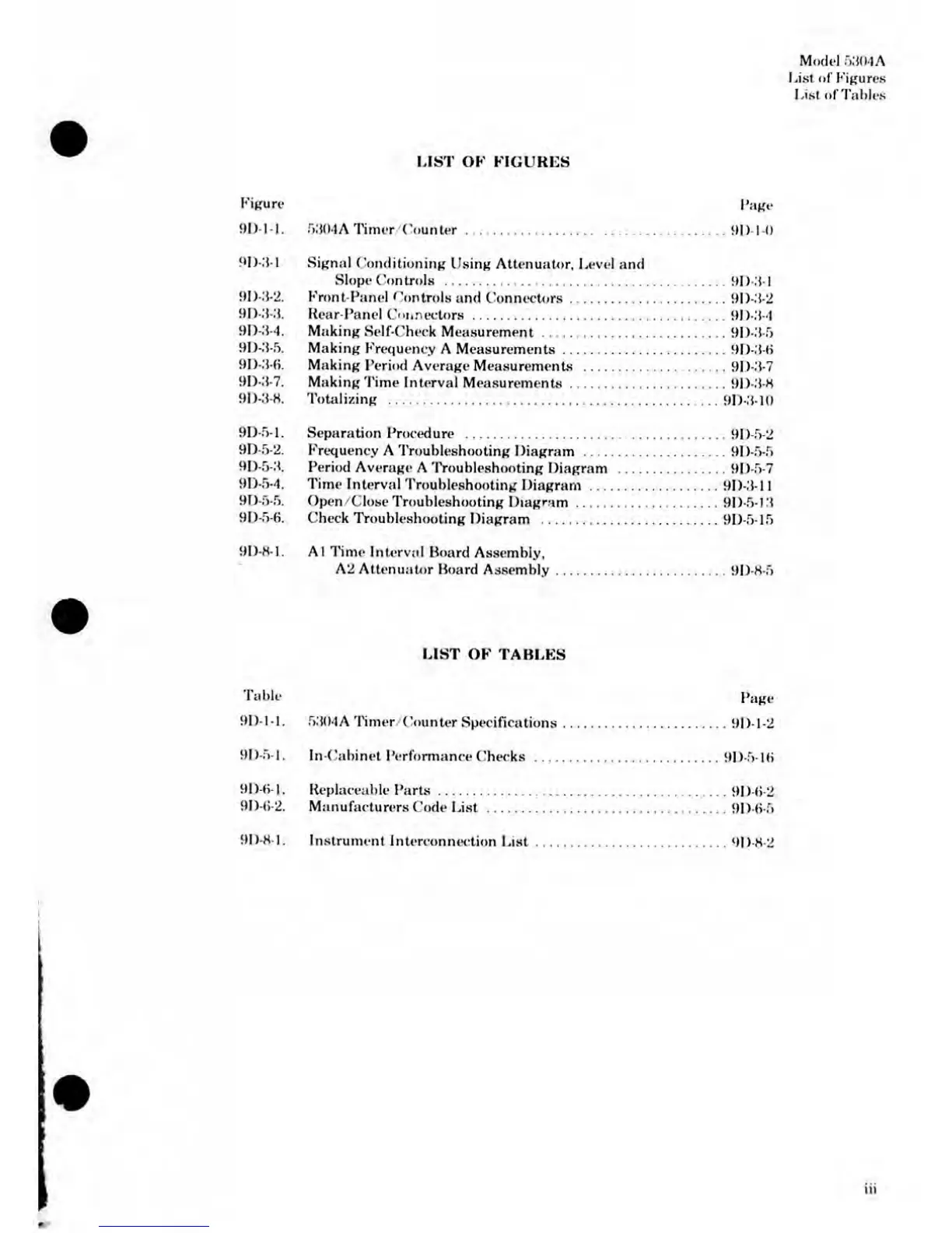 9D-1-1. 5304A Timer/Counter Specifications 9D-1-2