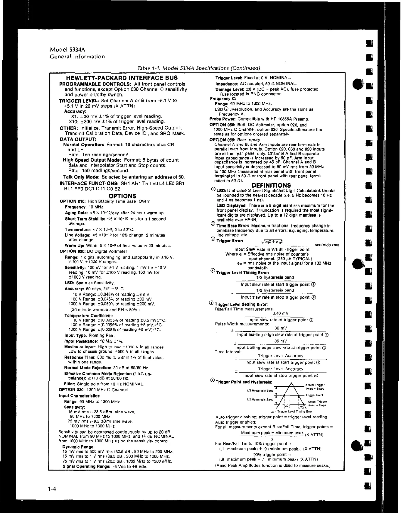 Table ‘f-1. Model 5334A Soecifications Kontinued)