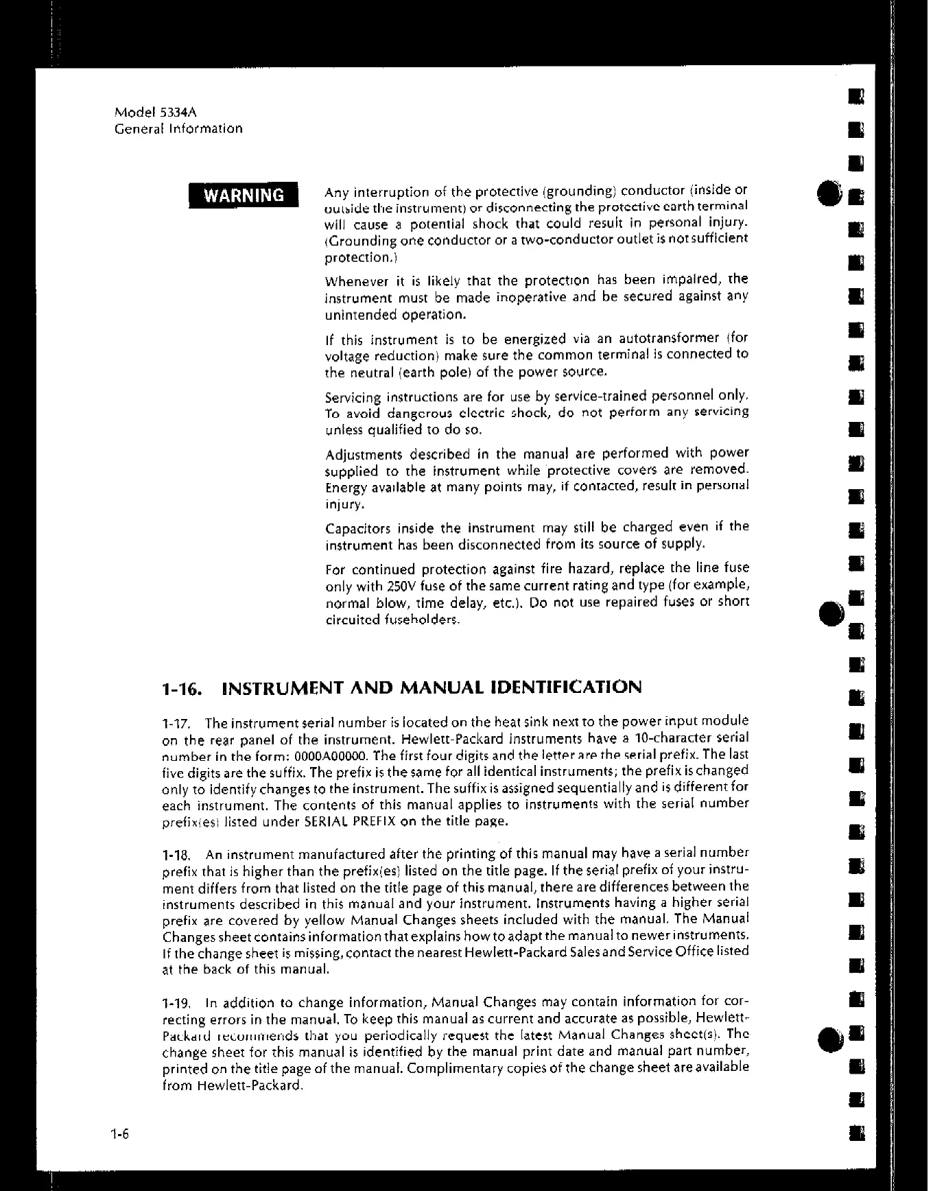 I-18. An instrument manufactured after the printing of this manual may have a serial number
