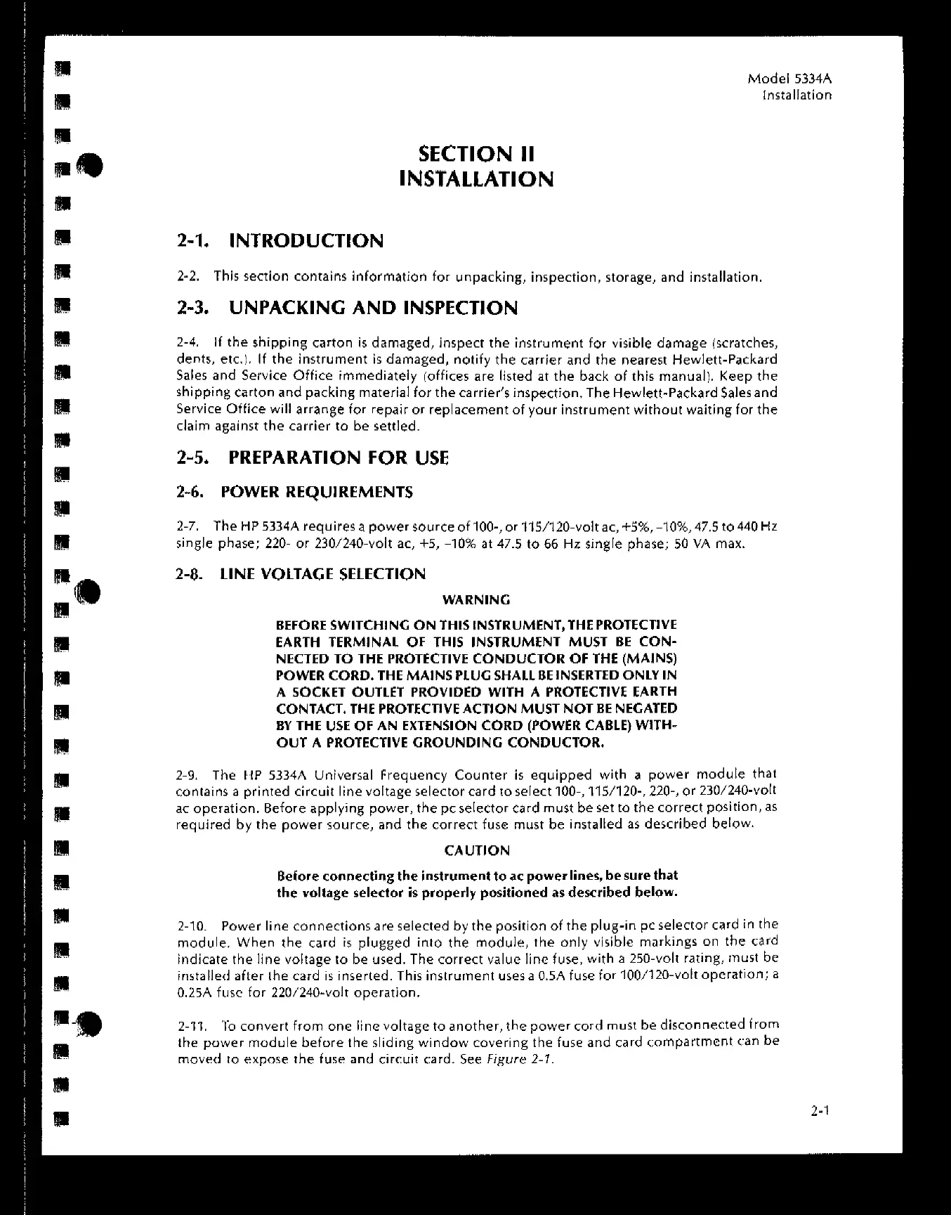HP 5334A - SECTION II INSTALLATION; INSTALLATION OVERVIEW AND SETUP