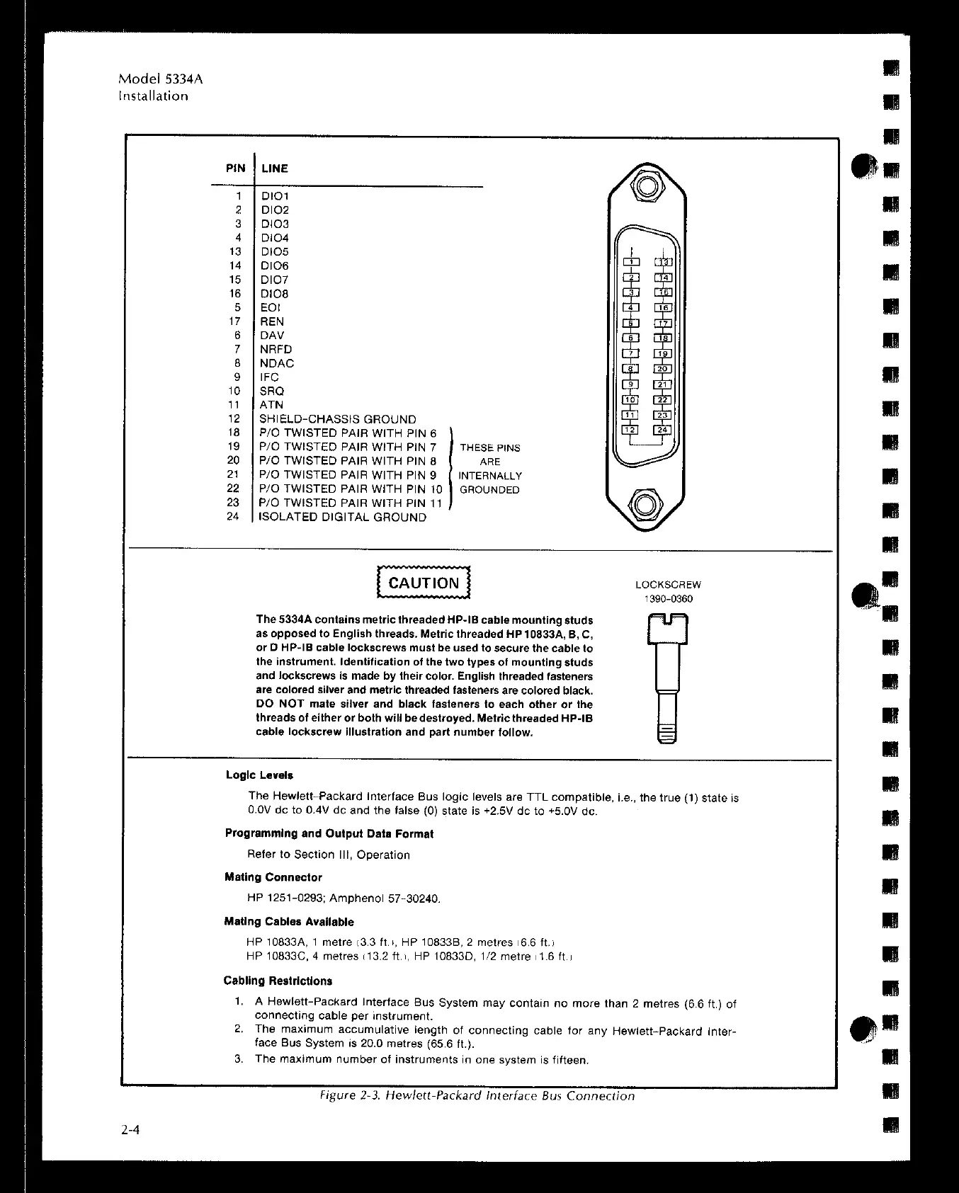HP 5334A - HP-IB INTERFACE AND STORAGE PROCEDURES