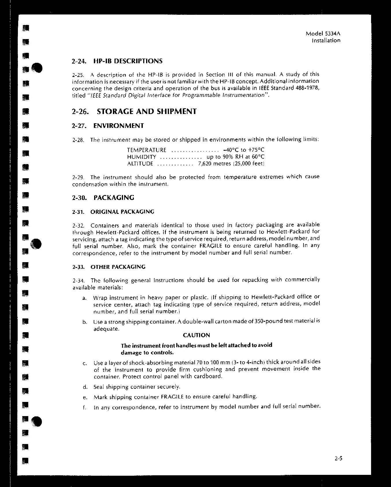 HP 5334A - PACKAGING AND ENVIRONMENT DETAILS