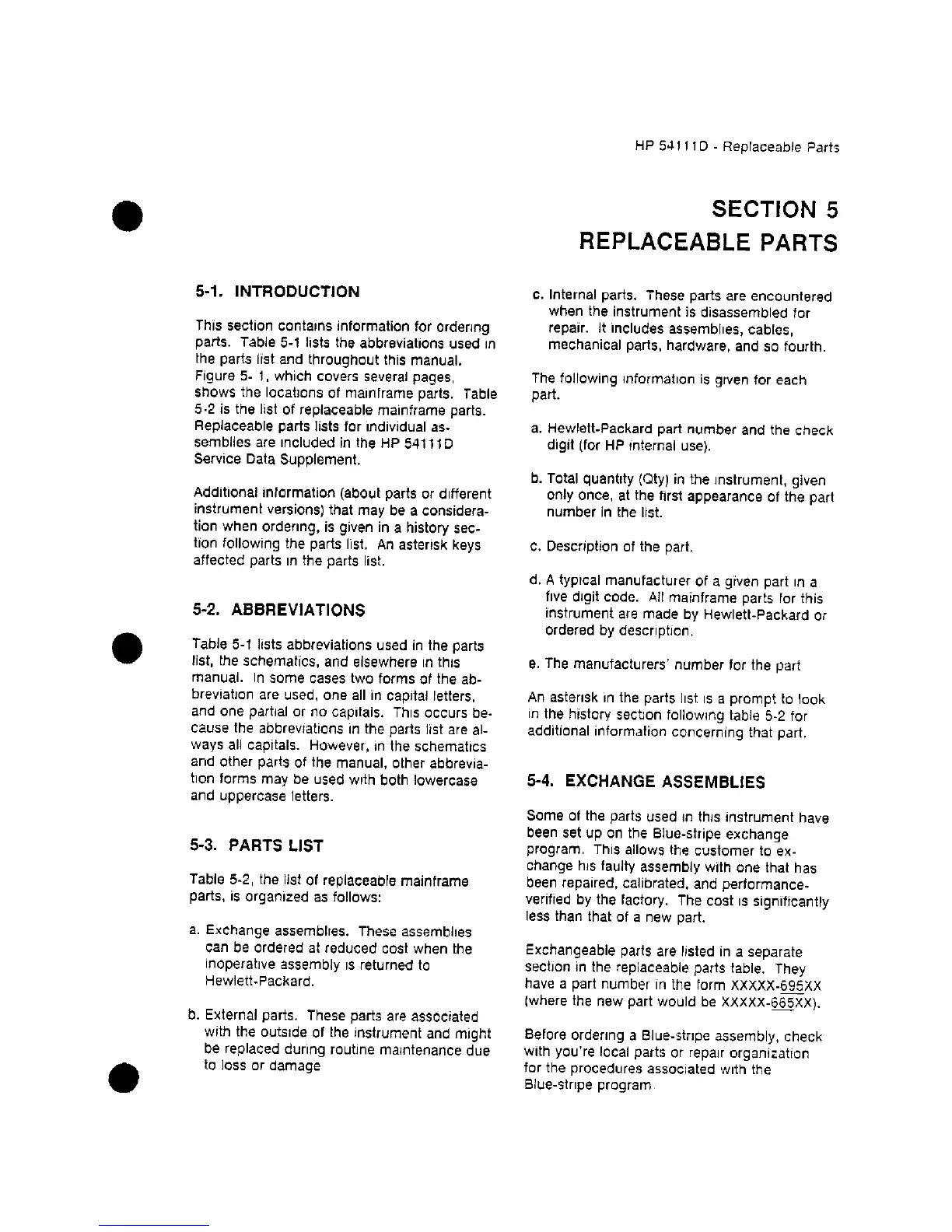 HP 54111d - REPLACEABLE PARTS; 5-1. Introduction; 5-2. Abbreviations; 5-3. Parts List
